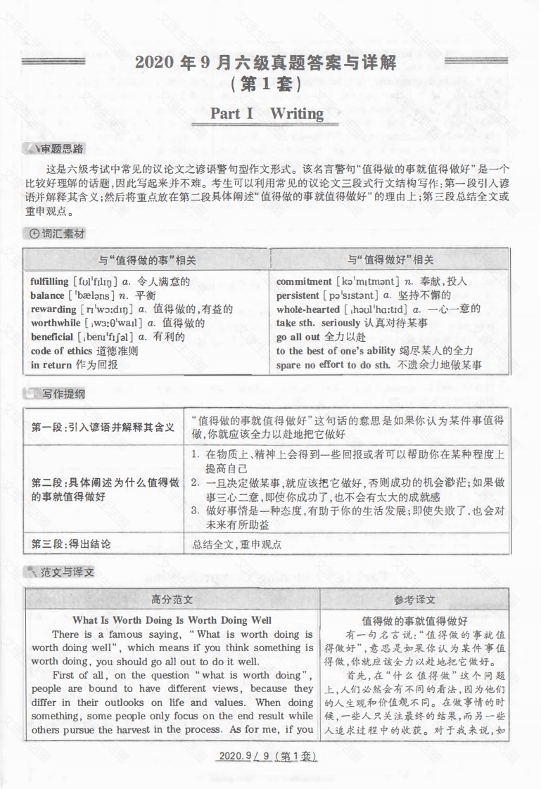 2020年9月六级第一套解析
