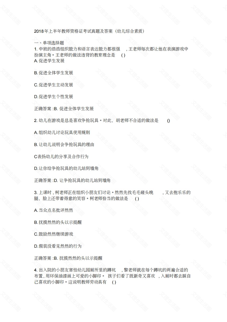 2018年上半年幼儿园教师资格证《综合素质》考试真题